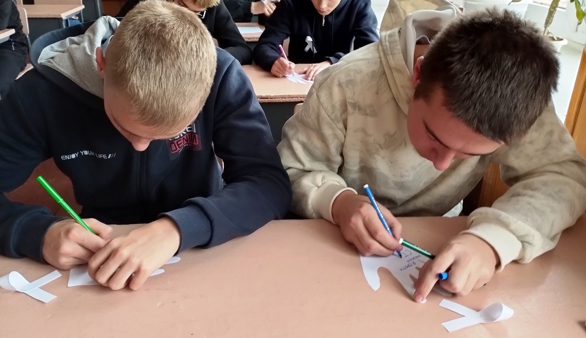 Організатори заходу практичний психолог Надія Ружицька та класний керівник групи №1 Ірина Кочмарук підготували для здобувачів освіти низку активностей, спрямованих на підвищення обізнаності щодо проблем насилля у суспільстві. Учні не лише дізналися про історію виникнення символу “Білої стрічки”, а й активно долучилися до обговорення важлиих питань: Як розпізнати насилля? Чому не можна мовчати? Де шукати підтримку?