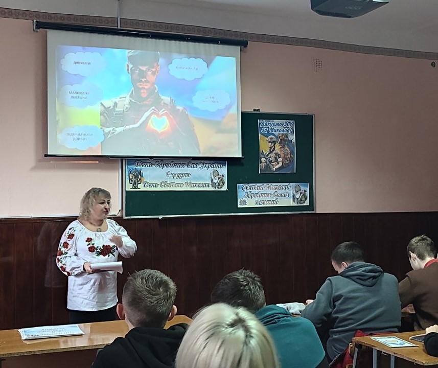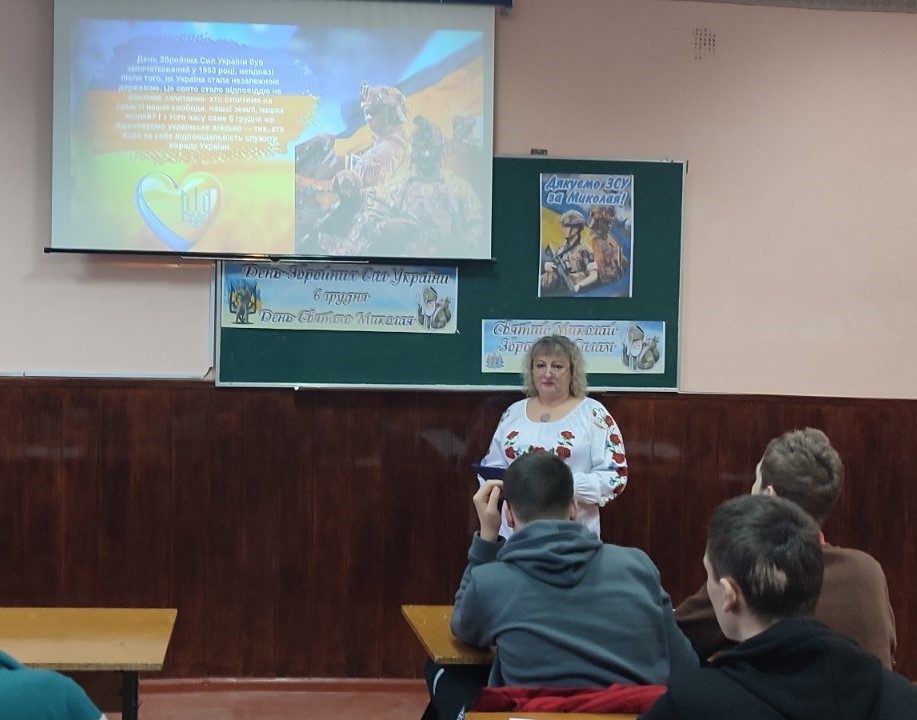 Саме тому 05.12.25 у ДПТНЗ “Жмеринське вище професійне училище” класним керівником Шевчук Тетяною та майстром в/н Тесленко Іриною у групі 4 проведений виховний захід на тему: «День ЗСУ та Святого Миколая».
