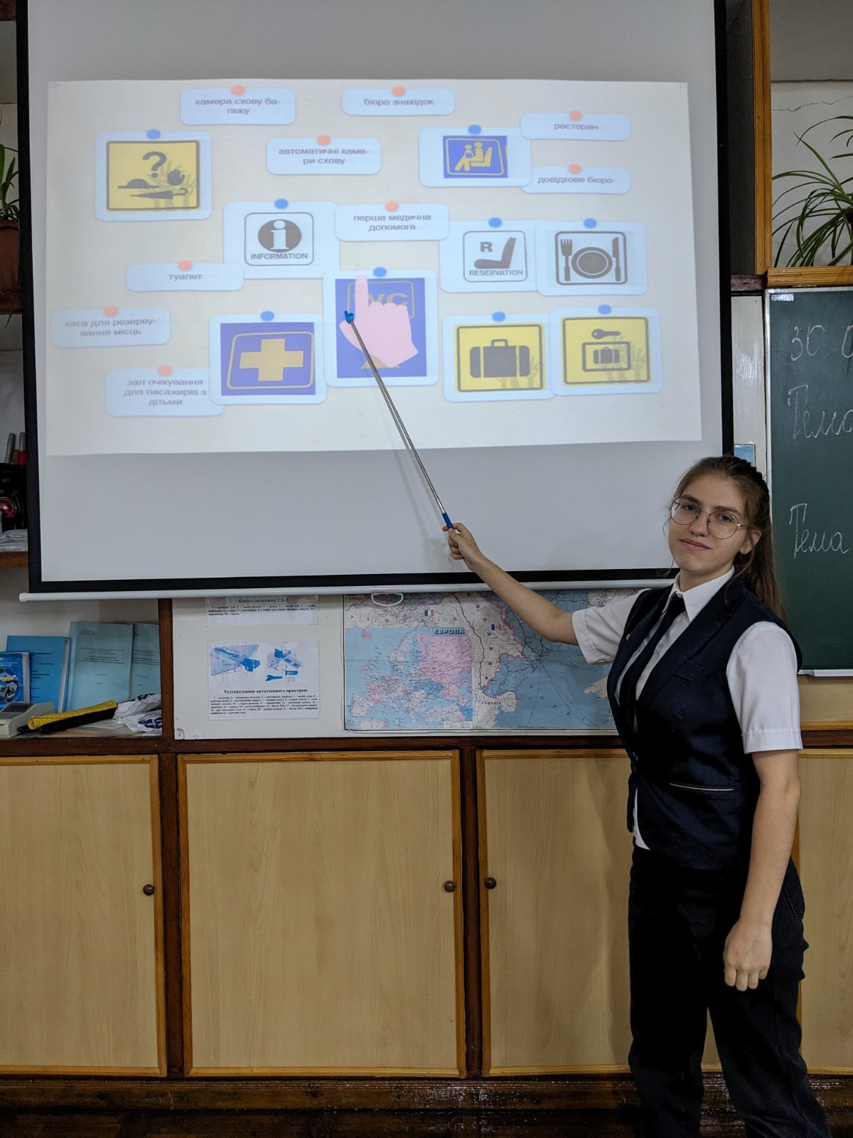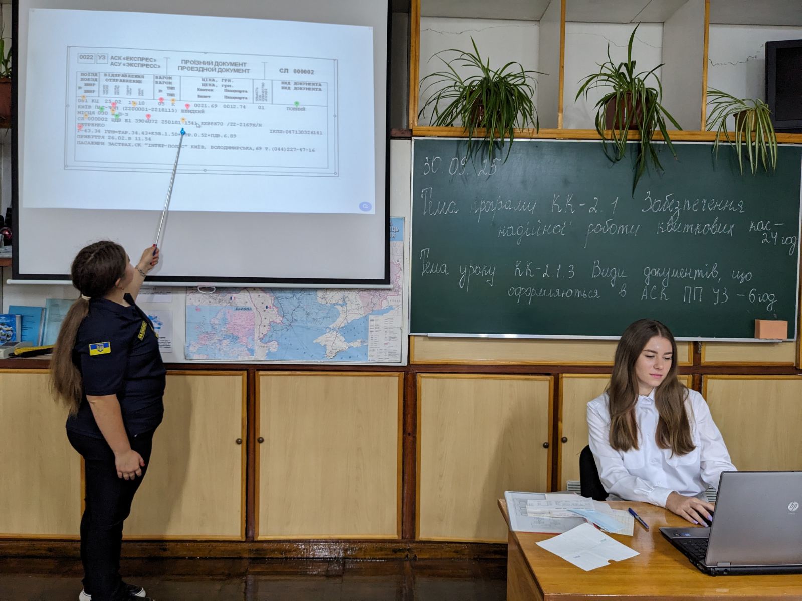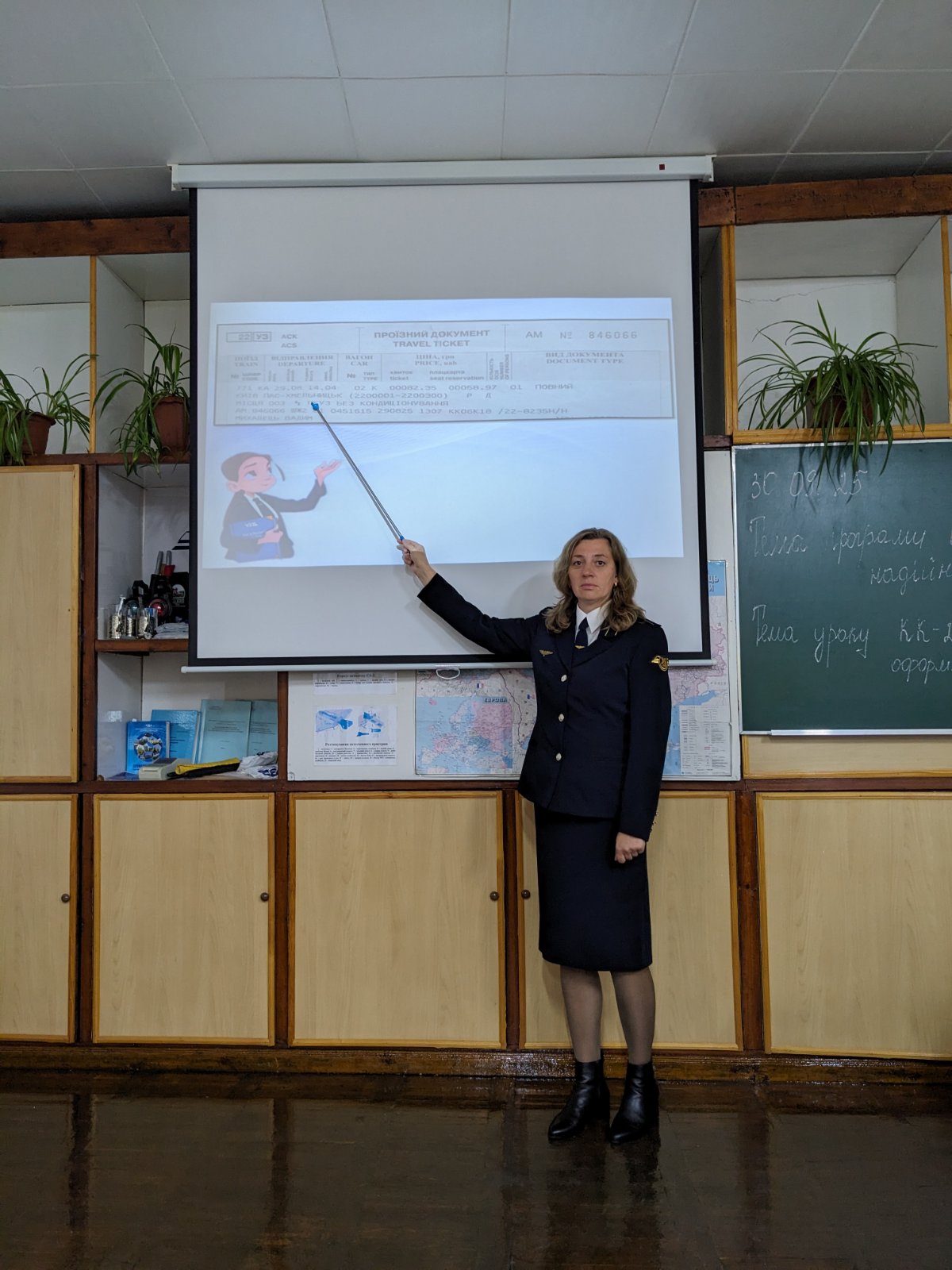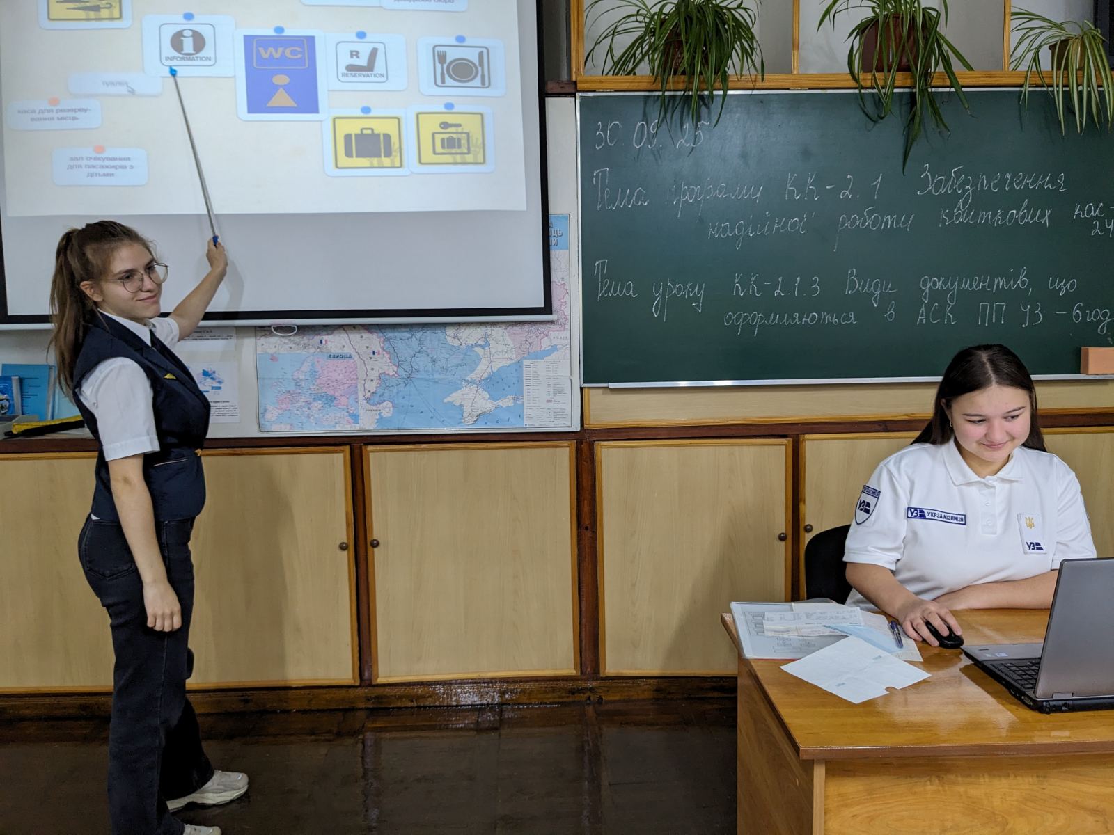 30.09.25р. майстром виробничого навчання Світланою Любецькою був проведений відкритий урок виробничого навчання у групі ІІ-ПКП-5 інтегрованої професії “Прийомоздавальник вантажу та багажу; касир багажний; касир квитковий; провідник пасажирського вагона”. Тема уроку: “Види документів, що оформляються в АСК ПП УЗ”. Мета: Вдосконалити вміння та сформувати навички здобувачів освіти щодо інформації, яка друкується на проїзних документах системи АСК ПП УЗ. Розвивати зацікавленість у навчанні шляхом використання ігор, розвивати логічне мислення, зорову та слухову память, почуття реальності в сучасному світі. На уроці були використані інтерактивні вправи з використанням сервісу Word wall, Learning Apps за посиланням “Функціональні клавіші”, “Піктограми”, “Охорона праці квиткового касира” та онлайн сервісу Wizer. me за посиланням “Тестові завдання”, рефлексія з використанням сервісу Word wall.