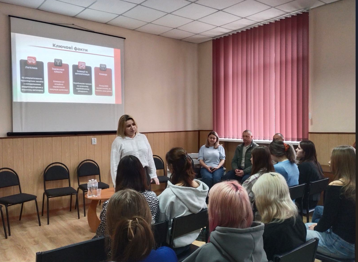 До відкритого діалогу долучився представник великого бізнесу — ТОВ «М’ясний майстер», який презентував діяльність підприємства, розповів про умови праці, актуальні вакансії та можливості професійного зростання. Здобувачі освіти отримали чітке розуміння вимог роботодавця та перспектив працевлаштування.