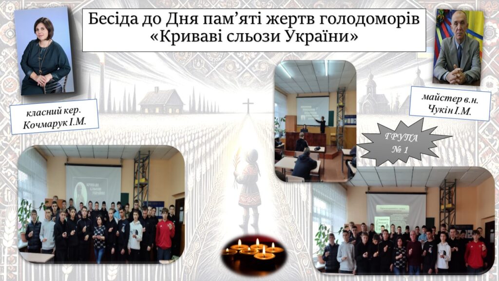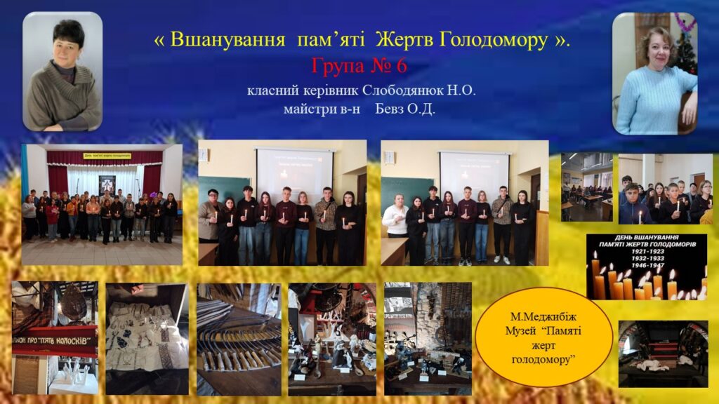 Сьогодні у Жмеринському вищому професійному училищі відбувся скорботний та глибоко символічний захід до Дня пам’яті жертв Голодомору 1932–1933 років та масових штучних голодів 1921-1923 та 1946-1947 років. Учнівський та педагогічний колективи об’єдналися, щоб згадати мільйони українців, чиє життя забрав штучно створений голод — геноцид, спланований сталінським тоталітарним режимом.