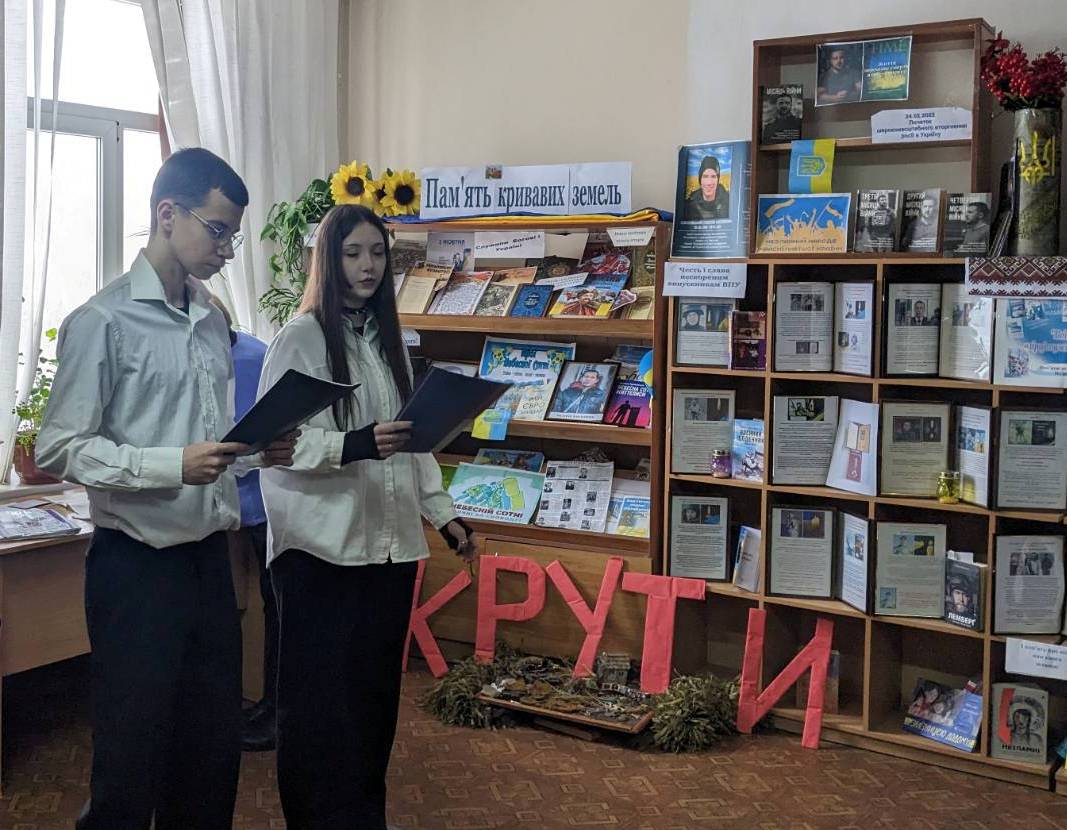 Голова учнівського самоврядування Даніїл Єфанов  висловив: «Юні серця стали легендою української свободи. Памятаємо Крути, бо пам’ять – це продовження боротьби».