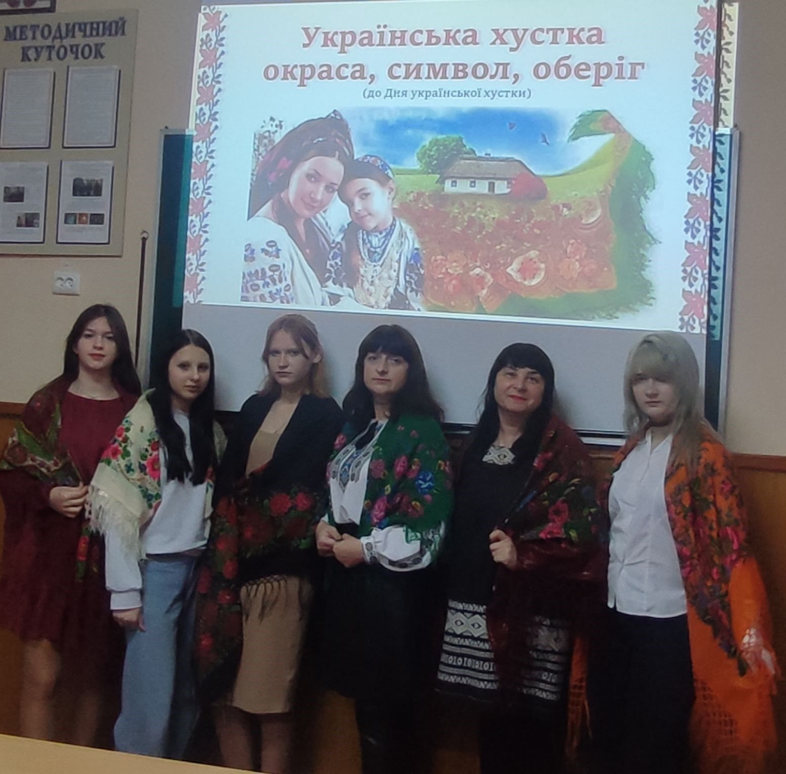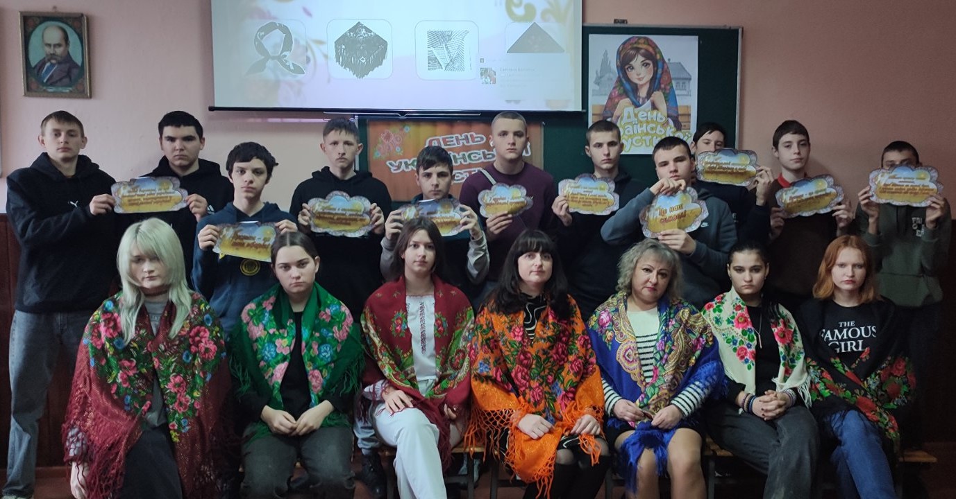 Саме тому 05.12.25 у ДПТНЗ “Жмеринське вище професійне училище” класним керівником Шевчук Тетяною, майстрами в/н Тесленко Іриною, Сулімою Іриною у групі 4 проведений виховний захід на тему: «Хустку одягаю – ПЕРЕМОГУ закликаю!».