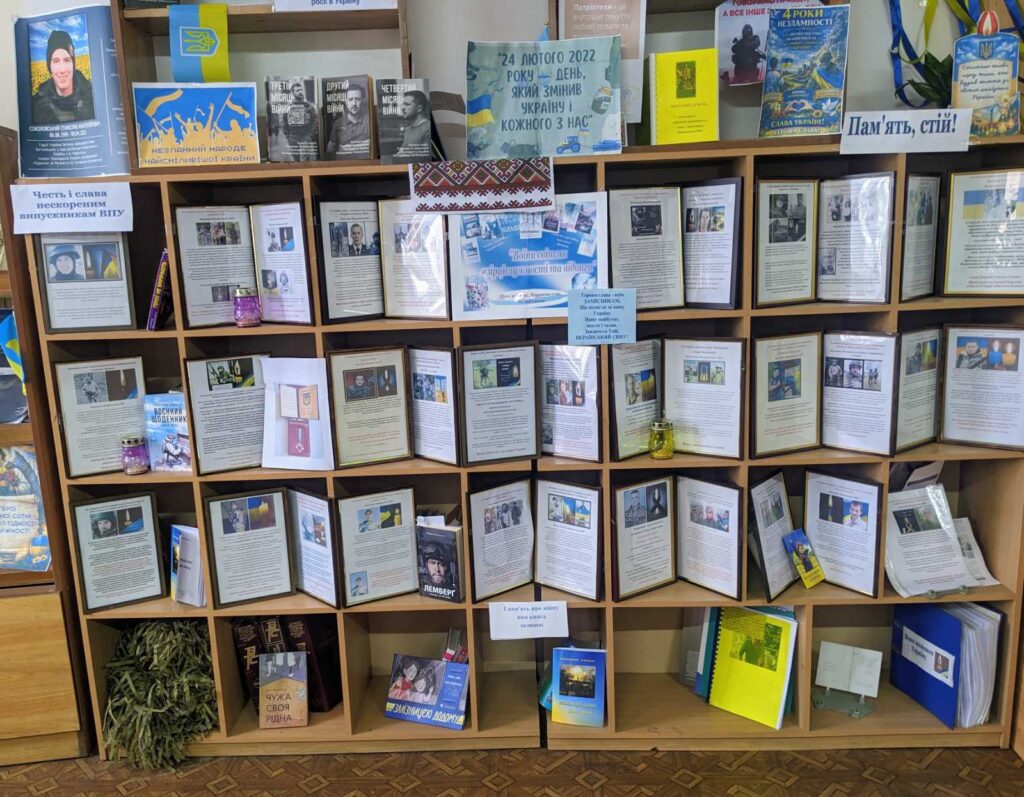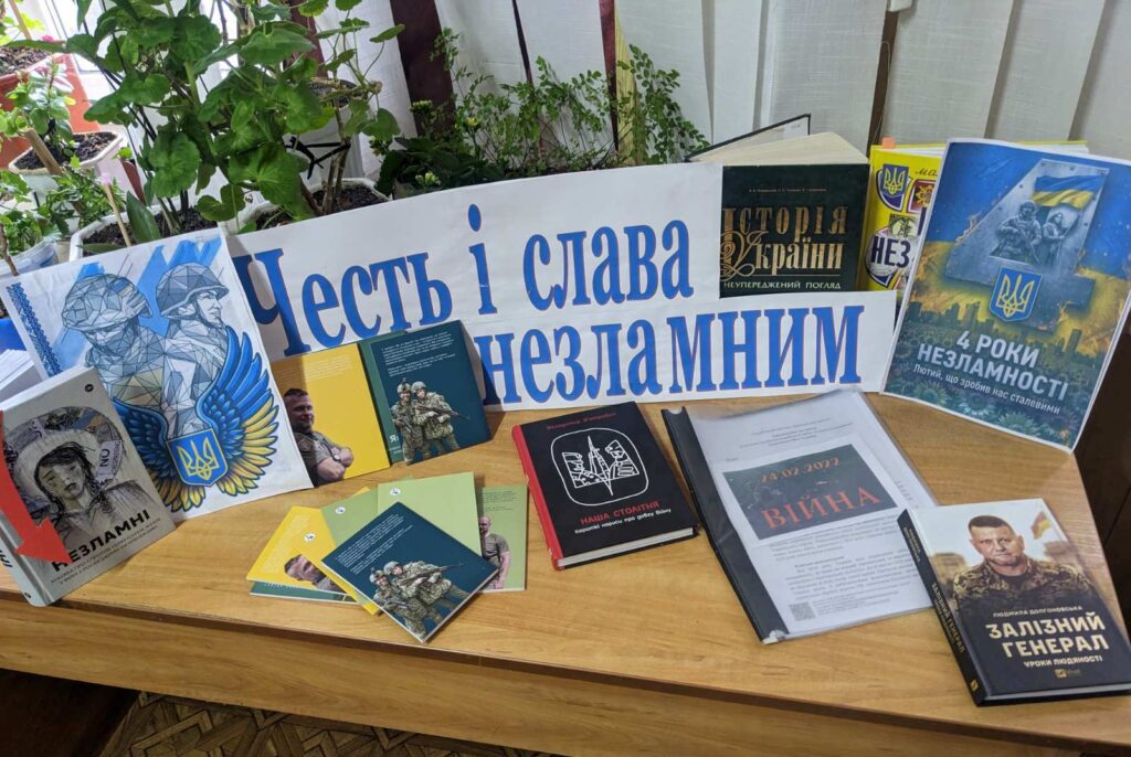 До 4-ї річниці повномасштабного вторгнення росії в Україну у бібліотеці Жмеринського ВПУ оформлено книжкову виставку «Честь і слава незламним».