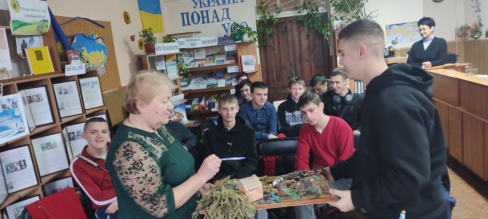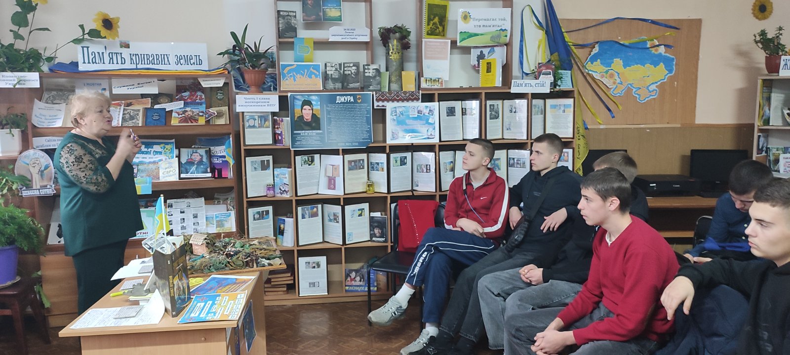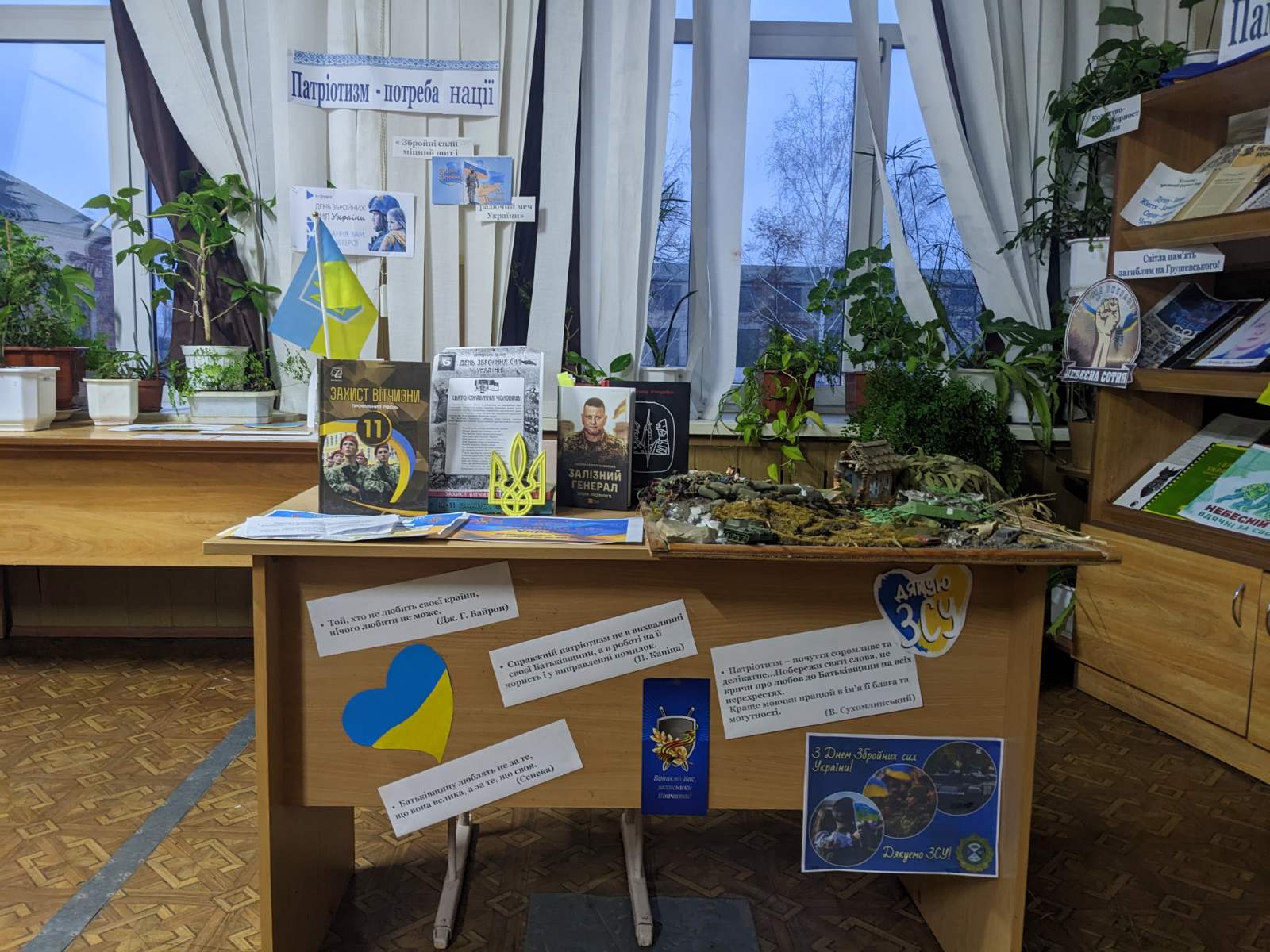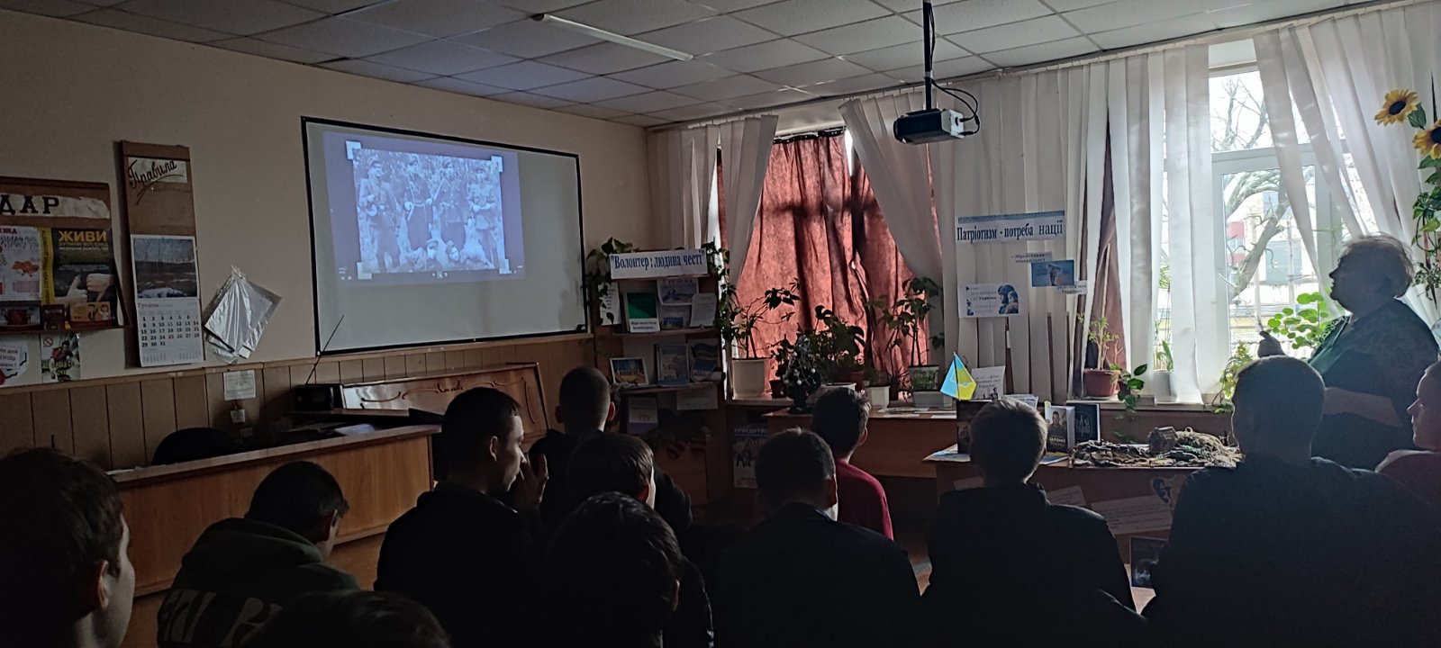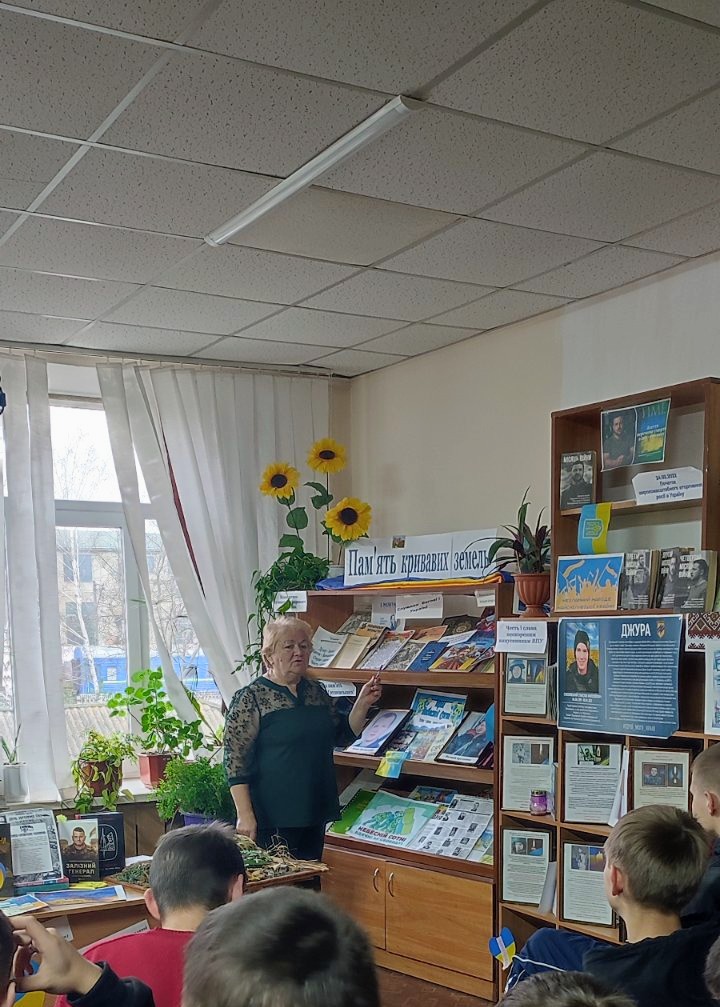 Відеофрагменти «Історія традицій українського війська», «Історія Збройних Сил України: історія незламних», «Армія, що вразила світ…», а також книжкова інсталяція «Патріотизм – потреба нації», підготовлені бібліотекарем Вієцькою С., доповнили захід та створили цілісний історичний образ українського війська.