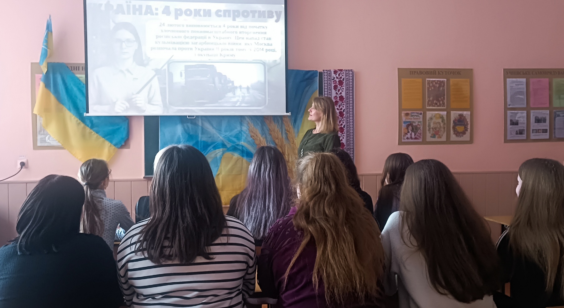23 лютого 2026 року у ДПТНЗ «Жмеринське вище професійне училище» класним керівником групи 9 Тетяною Свистун було проведено виховний захід, приурочений до четвертої річниці повномасштабного вторгнення.