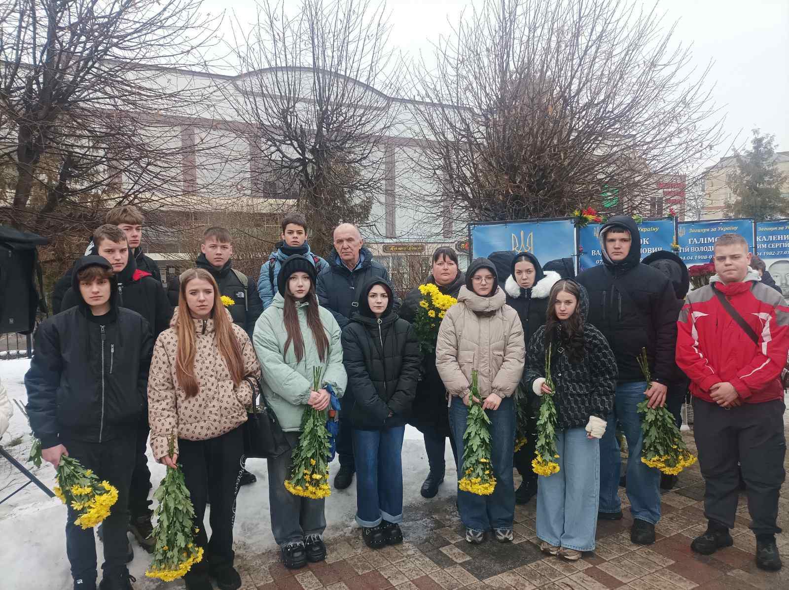 У тиші й глибокій шані здобувачі освіти поклали квіти до Алеї Героїв, схиливши голови в молитві і подяці тим, хто став щитом для нашої держави.