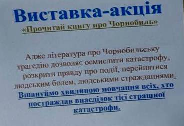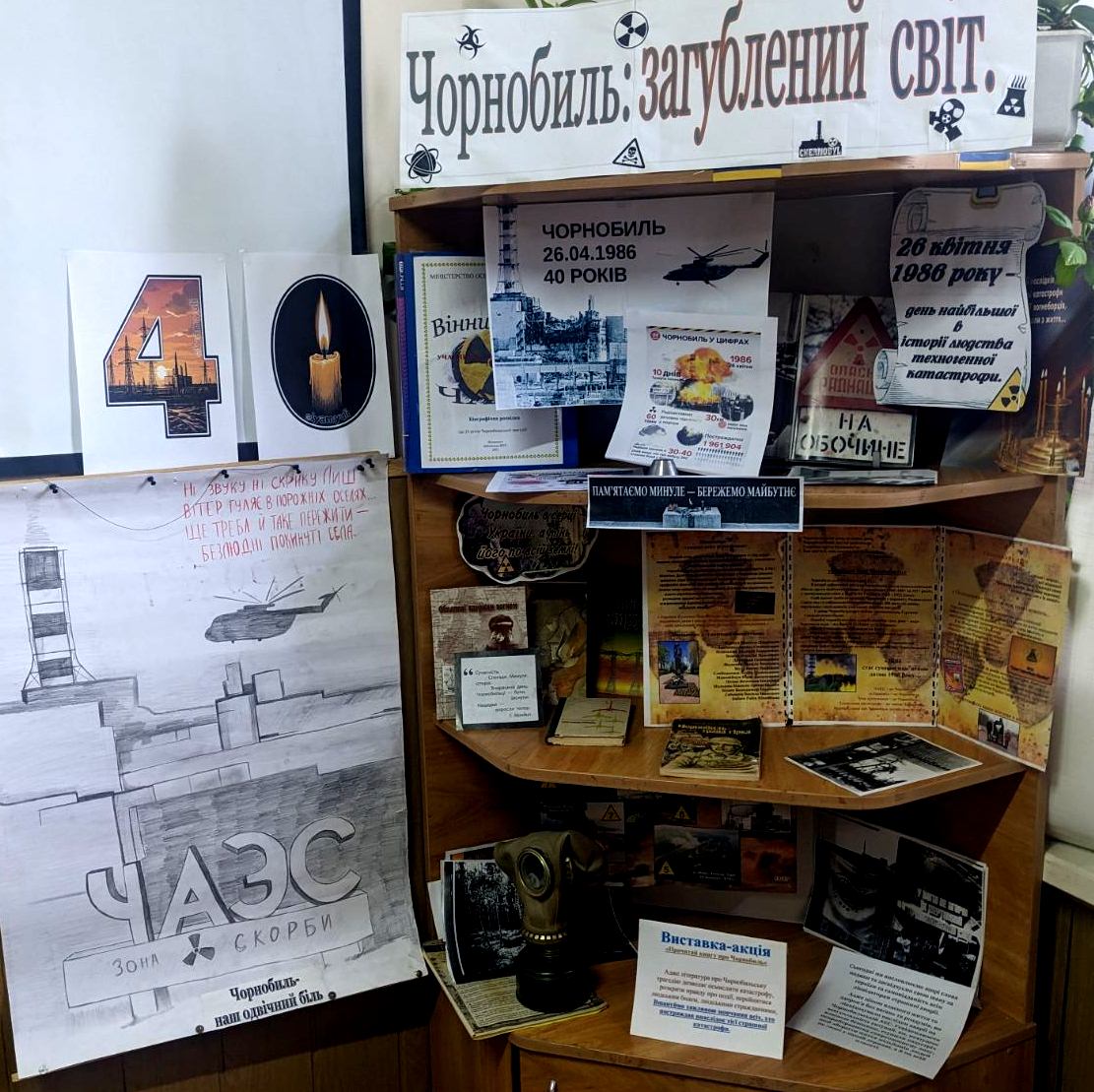 З нагоди 40-річниці Чорнобильської трагедії у бібліотеці було оформлено книжкову виставку-пам’ять «Чорнобиль: загублений світ», яка стала місцем осмислення, пам’яті та глибоких роздумів.