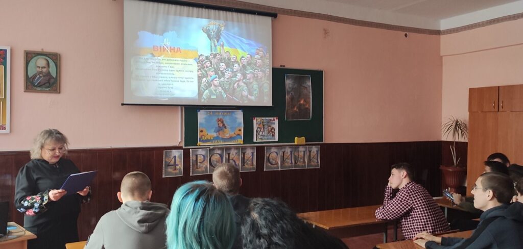 24.02.26 у ДПТНЗ «Жмеринське вище професійне училище» класним керівником Шевчук Тетяною та майстрами в/н Тесленко Іриною, Сулімою Іриною у групі 4 було проведено тематичний захід: «24 лютого – день, який змінив нас назавжди»