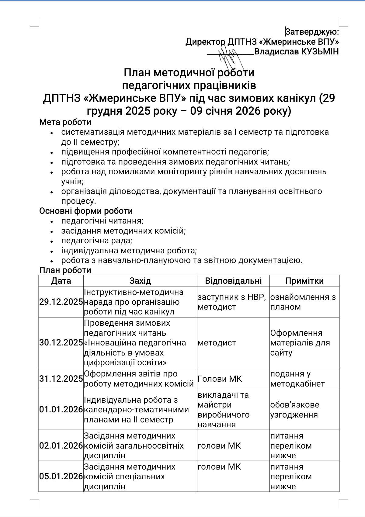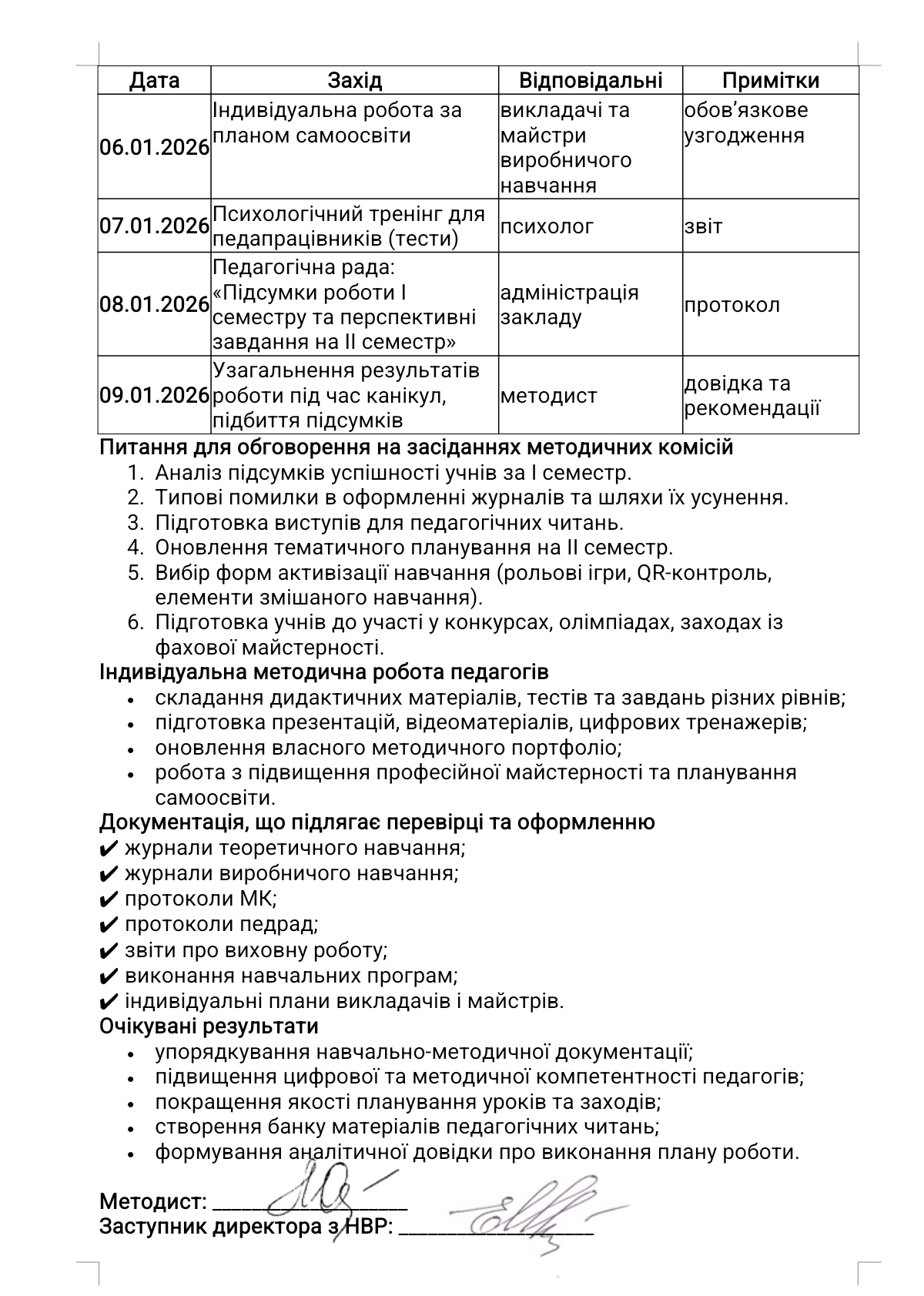 Методичну роботу в училищі організовано згідно з Положенням про методичну роботу в професійно – технічних навчальних закладах.