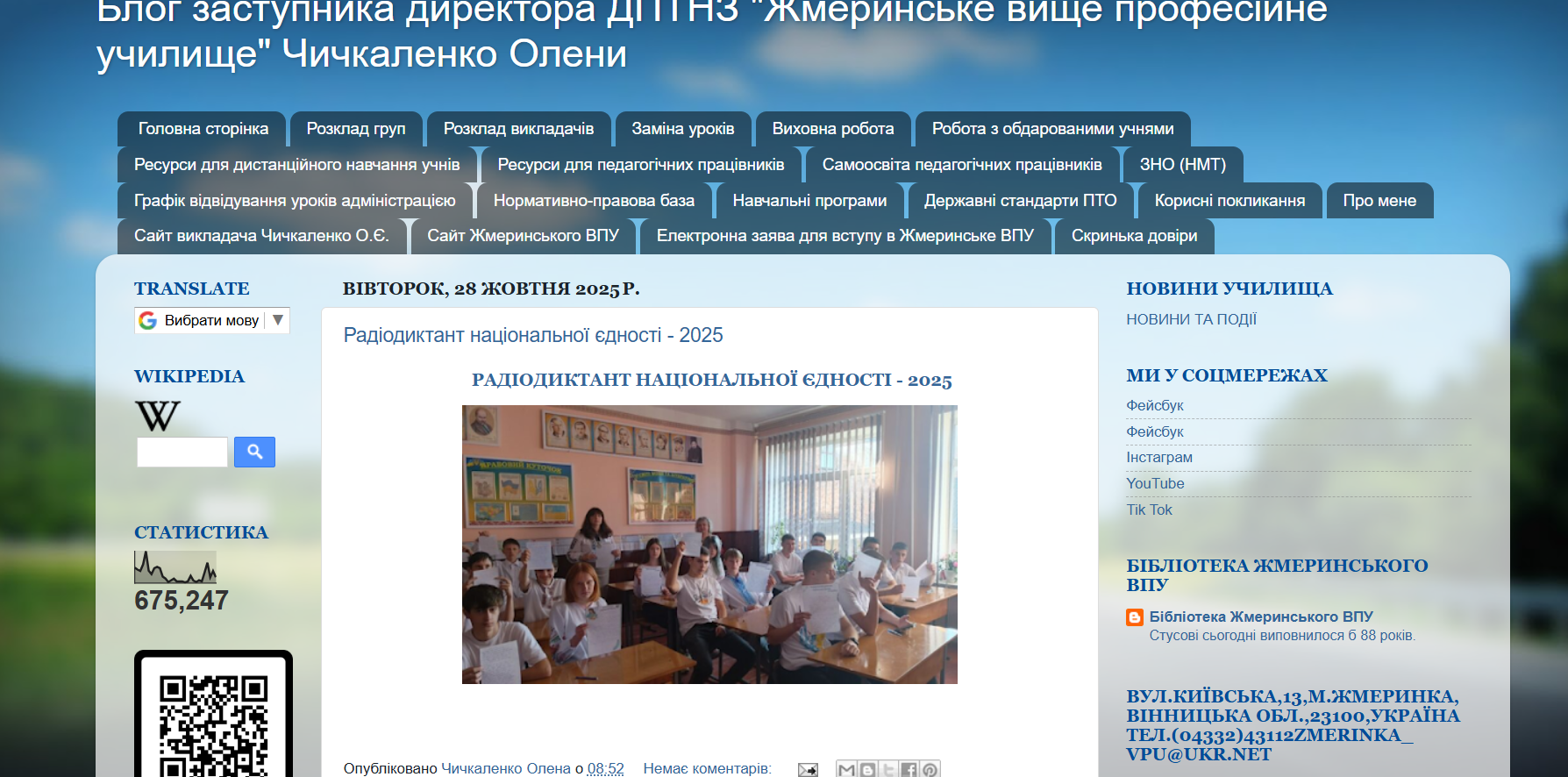 Блог заступника директора ДПТНЗ “Жмеринське вище професійне училище” Чичкаленко Олени